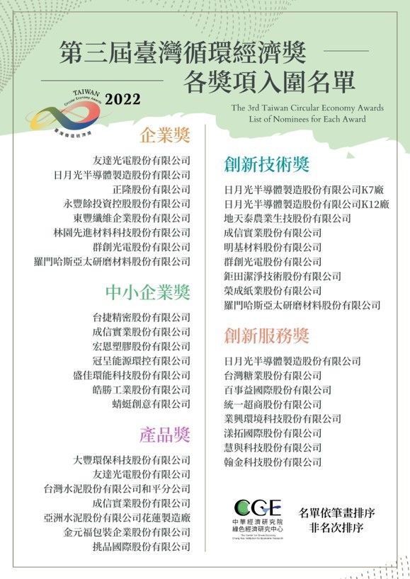 第三屆臺灣循環經濟獎入圍名單