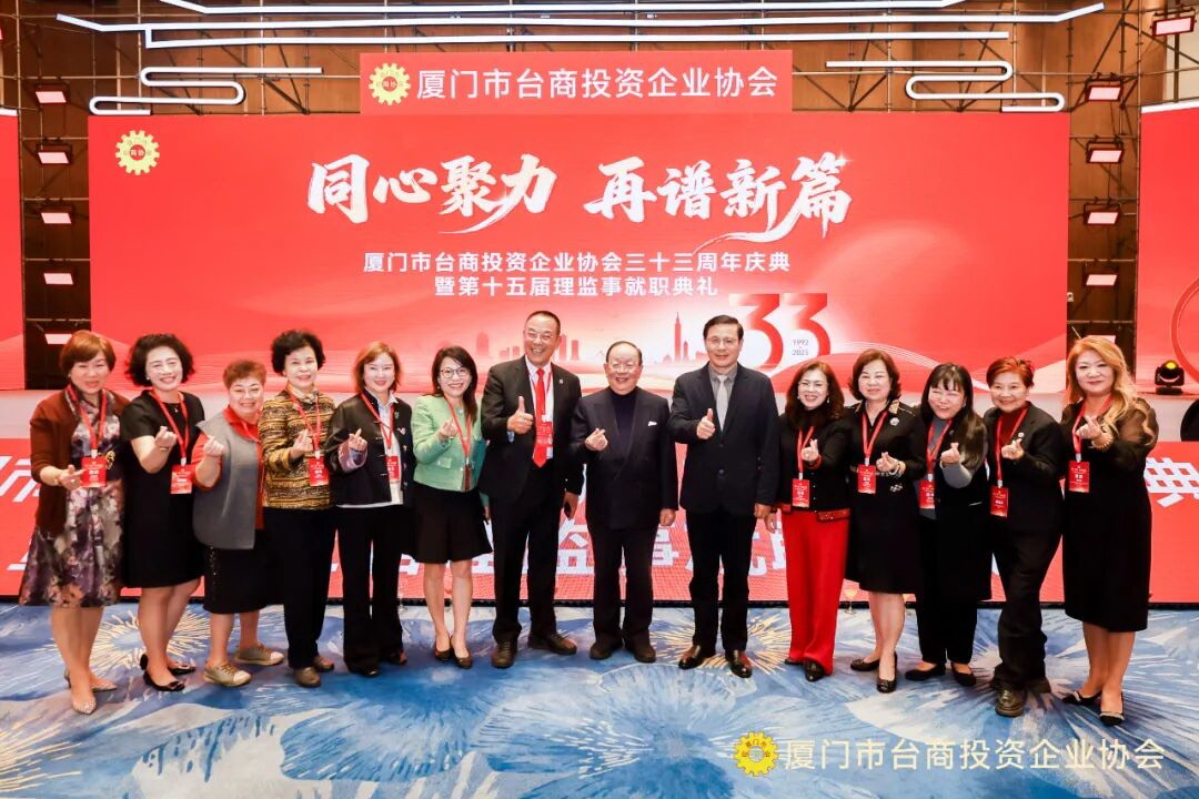 廈門臺商協會於12月20日在廈門國際會議中心酒店舉辦成立33周年慶典暨第15屆理監事就職典禮,這次活動以「同心聚力,再譜新篇」為主題,現場齊聚兩岸嘉賓、臺協友會逾1200人共襄盛舉。